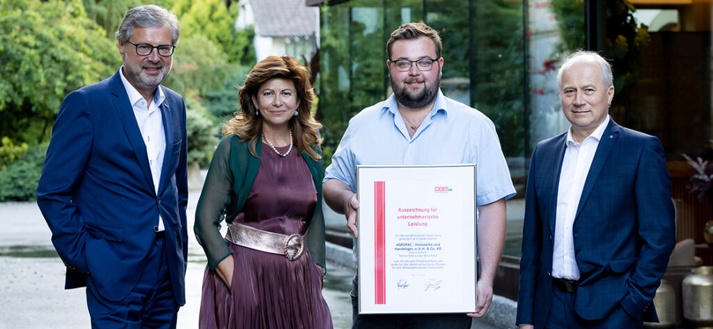 Juli 2021: WKO-Auszeichnung für unternehmerische Leistung zum 40-jährigen Firmenjubiläum der 1981 umgegründeten Firma in Agropac - Holzwerke und Handelsges.m.b.H. & Co. KG
