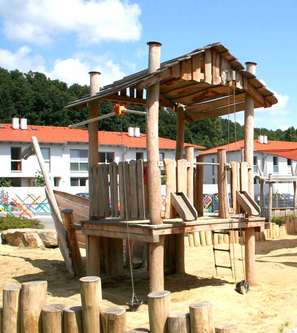 Unsere Robinienhölzer dürfen 2- 3 Jahre lagern, bis sie dann splintfrei sowie feingeschliffen verarbeitet werden. Dies garantiert eine lange Haltbarkeit der Spielgeräte mit minimalem Wartungsaufwand. Die natürliche Beständigkeit der Robinie im Außenbereich mit Erdberührung liegt bei bis zu 50 Jahren.