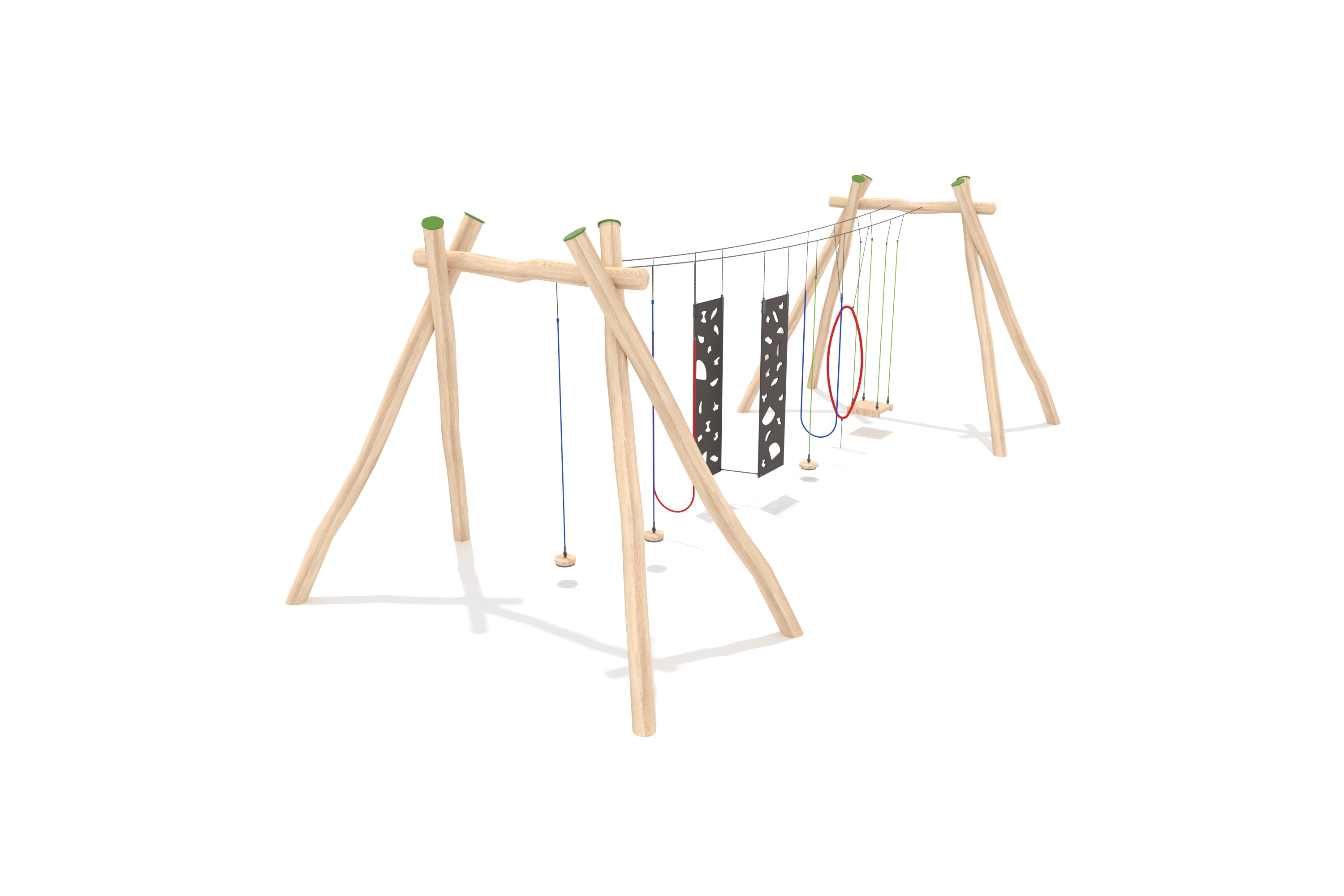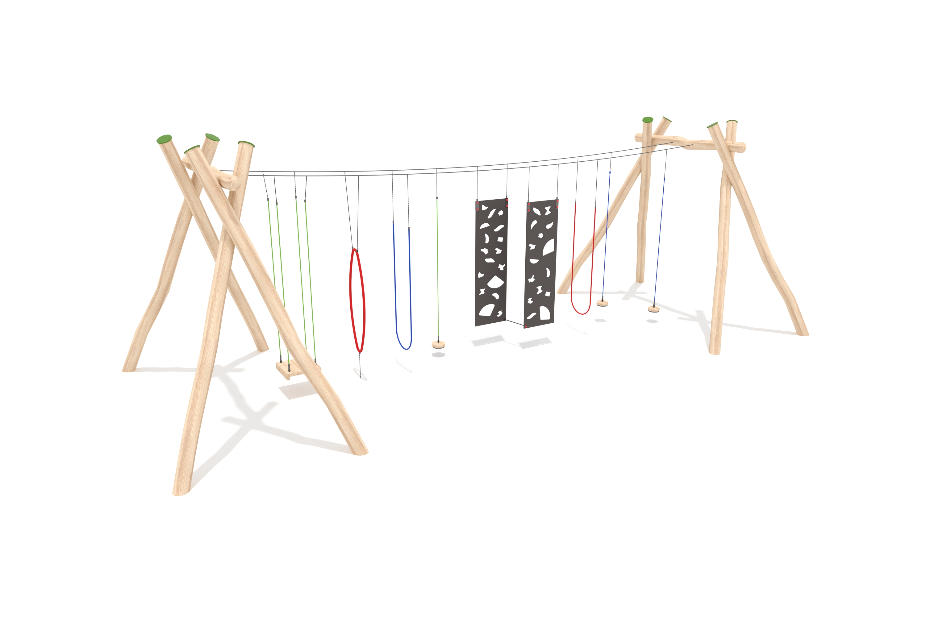 Kletternetze bestehen aus Herkulesseilen mit Stahldrahteinlagen mit feuerverzinkten Anschlüssen. Die Seile sind UV-beständig und mit PP-Leinen umwickelt. Die Seilverbindungen sind mit patentierten PP-Elementen hergestellt und vandalensicher.