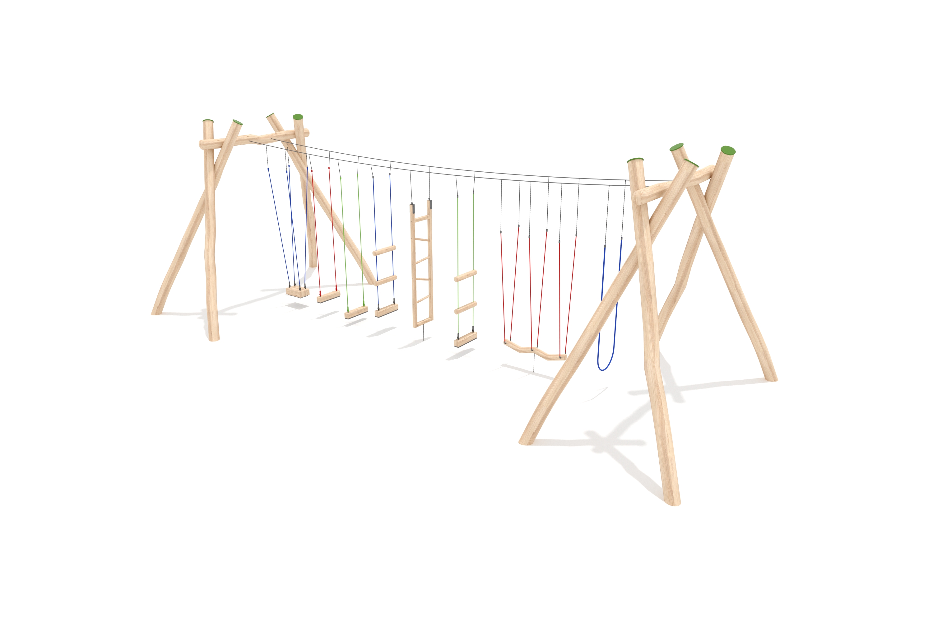 Kletternetze bestehen aus Herkulesseilen mit Stahldrahteinlagen mit feuerverzinkten Anschlüssen. Die Seile sind UV-beständig und mit PP-Leinen umwickelt. Die Seilverbindungen sind mit patentierten PP-Elementen hergestellt und vandalensicher.