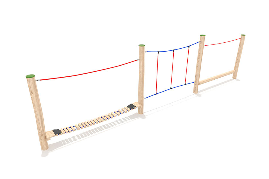 Kletternetze bestehen aus Herkulesseilen mit Stahldrahteinlagen mit feuerverzinkten Anschlüssen. Die Seile sind UV-beständig und mit PP-Leinen umwickelt. Die Seilverbindungen sind mit patentierten PP-Elementen hergestellt und vandalensicher.