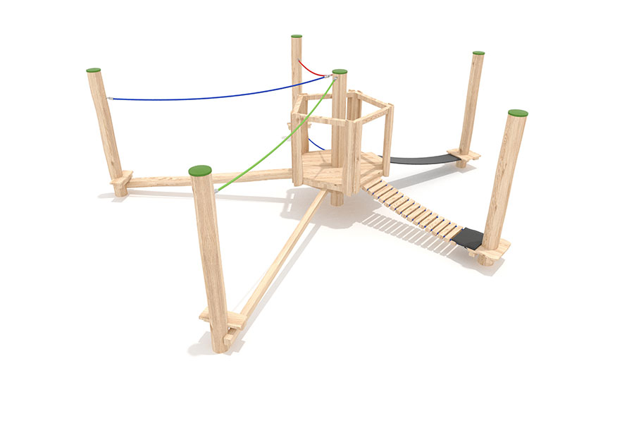 Kletternetze bestehen aus Herkulesseilen mit Stahldrahteinlagen mit feuerverzinkten Anschlüssen. Die Seile sind UV-beständig und mit PP-Leinen umwickelt. Die Seilverbindungen sind mit patentierten PP-Elementen hergestellt und vandalensicher.