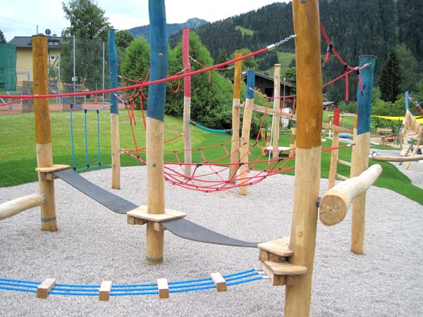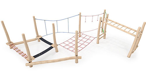 Kletternetze bestehen aus Herkulesseilen mit Stahldrahteinlagen mit feuerverzinkten Anschlüssen. Die Seile sind UV-beständig und mit PP-Leinen umwickelt. Die Seilverbindungen sind mit patentierten PP-Elementen hergestellt und vandalensicher.