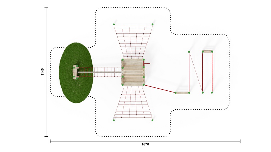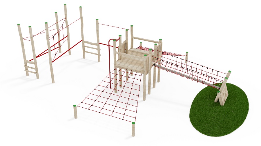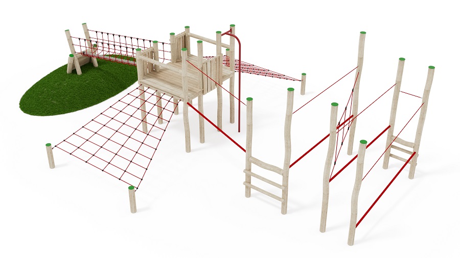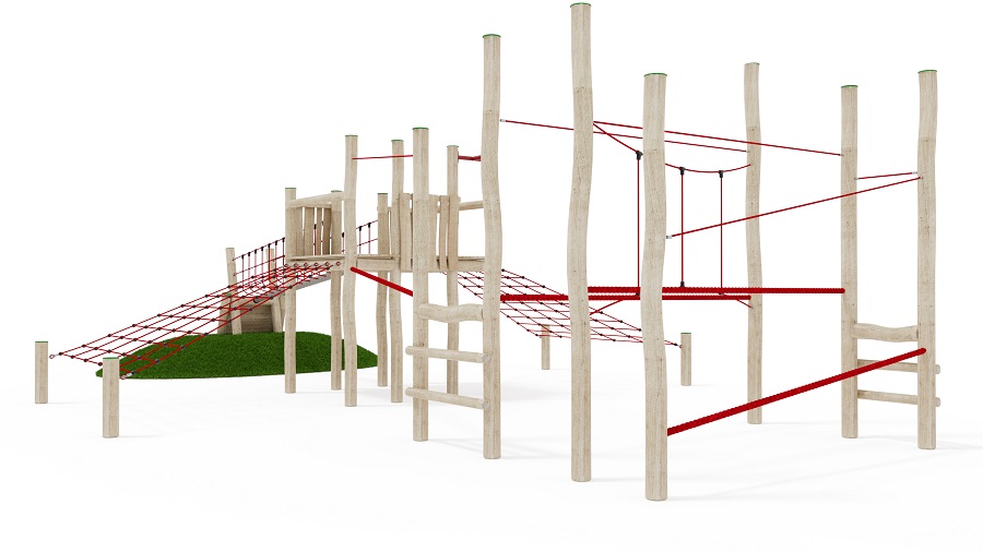 Kletternetze bestehen aus Herkulesseilen mit Stahldrahteinlagen mit feuerverzinkten Anschlüssen. Die Seile sind UV-beständig und mit PP-Leinen umwickelt. Die Seilverbindungen sind mit patentierten PP-Elementen hergestellt und vandalensicher.