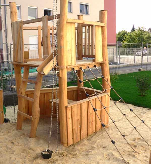 Unsere Robinienhölzer dürfen 2- 3 Jahre lagern, bis sie dann splintfrei sowie feingeschliffen verarbeitet werden. Dies garantiert eine lange Haltbarkeit der Spielgeräte mit minimalem Wartungsaufwand. Die natürliche Beständigkeit der Robinie im Außenbereich mit Erdberührung liegt bei bis zu 50 Jahren.