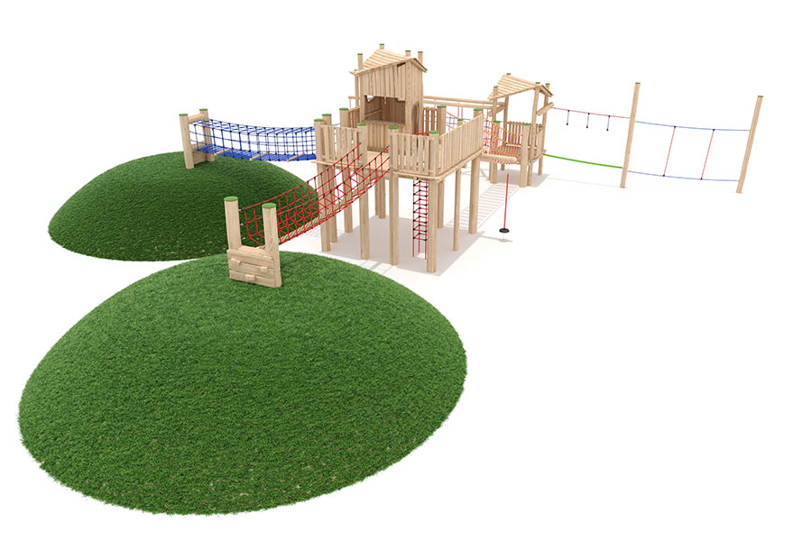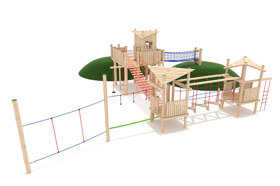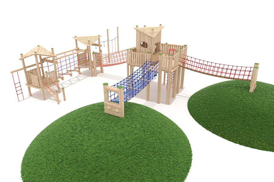Kletternetze bestehen aus Herkulesseilen mit Stahldrahteinlagen mit feuerverzinkten Anschlüssen. Die Seile sind UV-beständig und mit PP-Leinen umwickelt. Die Seilverbindungen sind mit patentierten PP-Elementen hergestellt und vandalensicher.