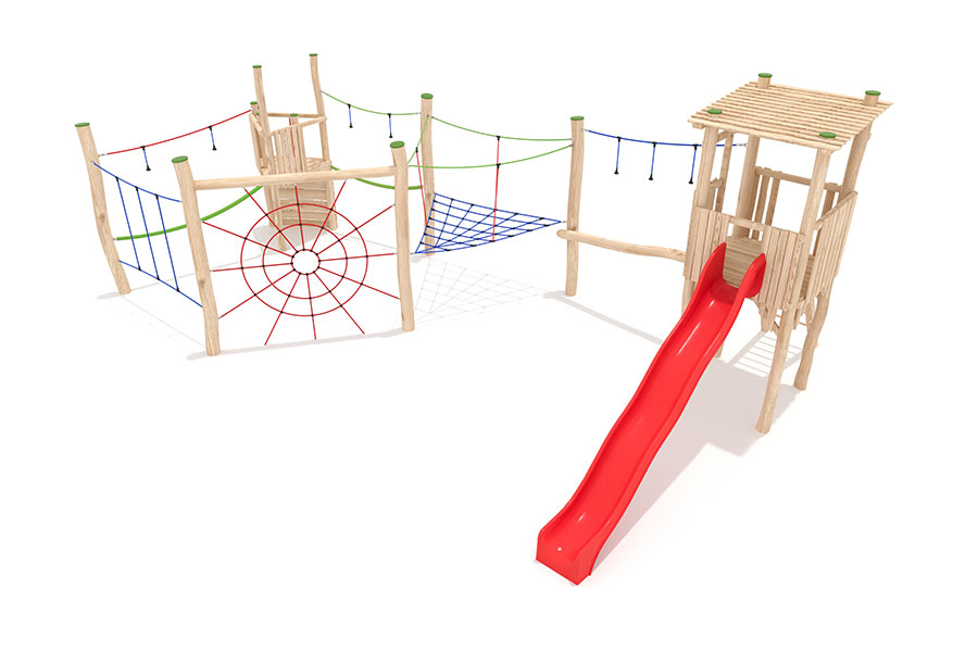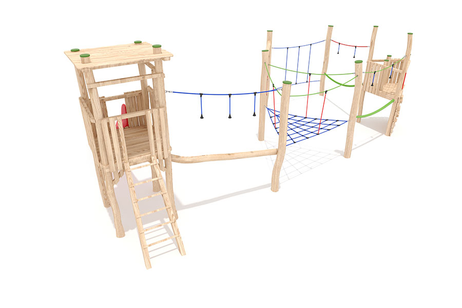 Kletternetze bestehen aus Herkulesseilen mit Stahldrahteinlagen mit feuerverzinkten Anschlüssen. Die Seile sind UV-beständig und mit PP-Leinen umwickelt. Die Seilverbindungen sind mit patentierten PP-Elementen hergestellt und vandalensicher.
