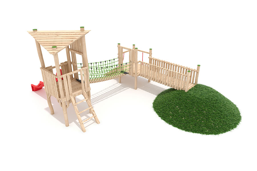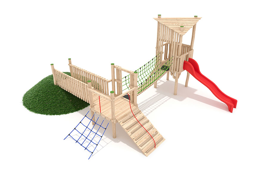 Kletternetze bestehen aus Herkulesseilen mit Stahldrahteinlagen mit feuerverzinkten Anschlüssen. Die Seile sind UV-beständig und mit PP-Leinen umwickelt. Die Seilverbindungen sind mit patentierten PP-Elementen hergestellt und vandalensicher.