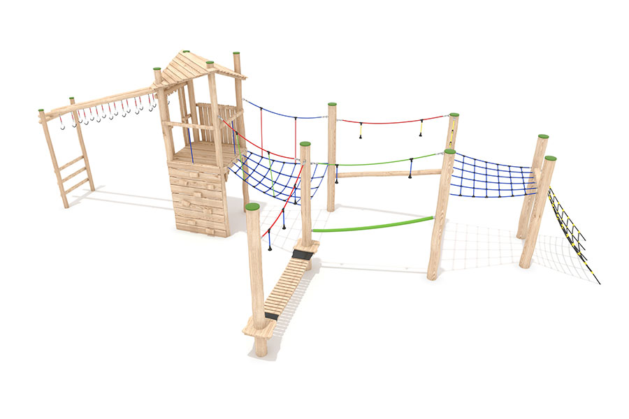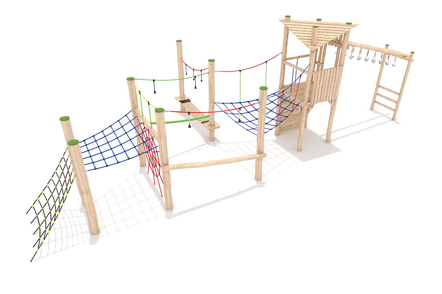 Kletternetze bestehen aus Herkulesseilen mit Stahldrahteinlagen mit feuerverzinkten Anschlüssen. Die Seile sind UV-beständig und mit PP-Leinen umwickelt. Die Seilverbindungen sind mit patentierten PP-Elementen hergestellt und vandalensicher.