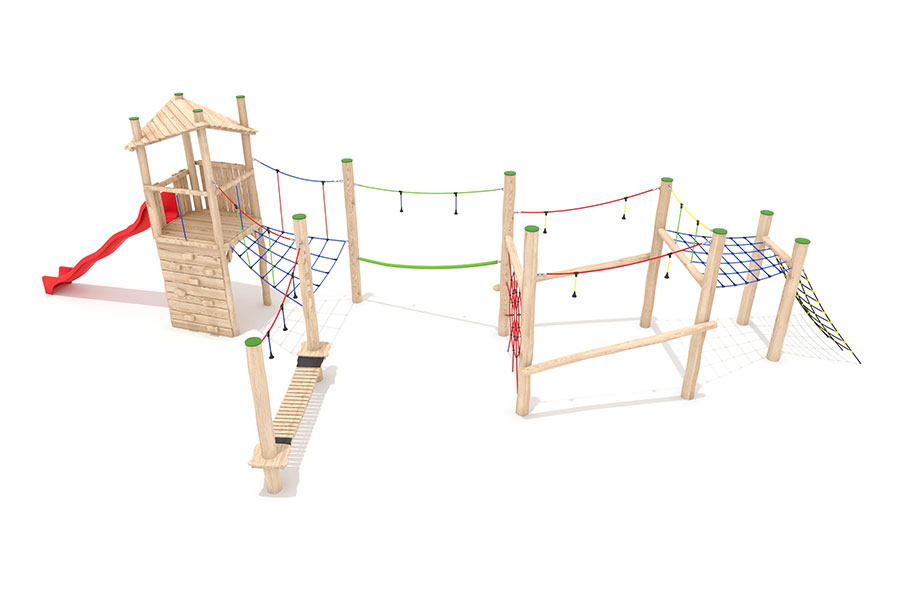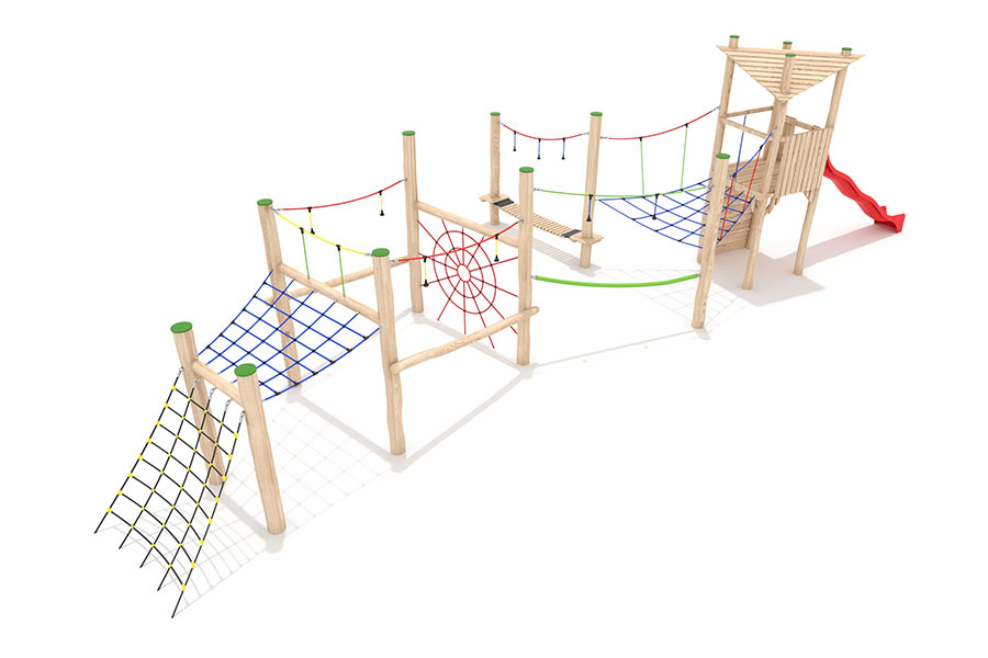 Kletternetze bestehen aus Herkulesseilen mit Stahldrahteinlagen mit feuerverzinkten Anschlüssen. Die Seile sind UV-beständig und mit PP-Leinen umwickelt. Die Seilverbindungen sind mit patentierten PP-Elementen hergestellt und vandalensicher.
