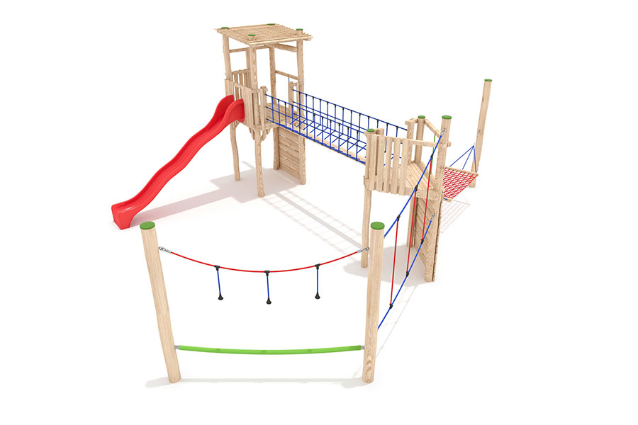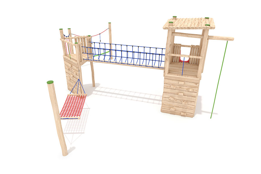 Kletternetze bestehen aus Herkulesseilen mit Stahldrahteinlagen mit feuerverzinkten Anschlüssen. Die Seile sind UV-beständig und mit PP-Leinen umwickelt. Die Seilverbindungen sind mit patentierten PP-Elementen hergestellt und vandalensicher.