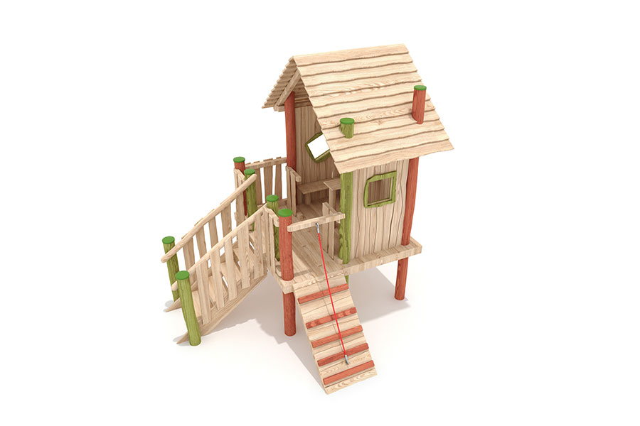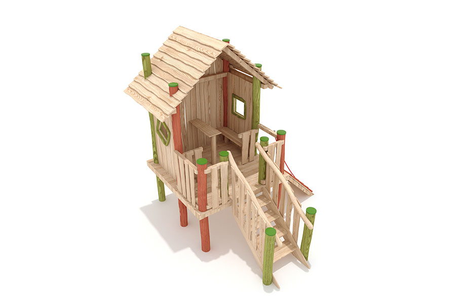 - 1 Spielhaus mit Dach, Podesth. 95 cm