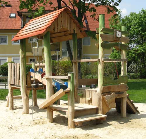 Robinienholz ist ein witterungsbeständiges Hartholz mit optimalen Eigenschaften für den Einsatz im Außenbereich. Um unseren Spielanlagen ein wenig Farbe zu verleihen, arbeiten wir mit einem speziellen Holzanstrich auf Natürölbasis, welcher umweltverträglich und gleichermaßen kinderfreundlich ist.