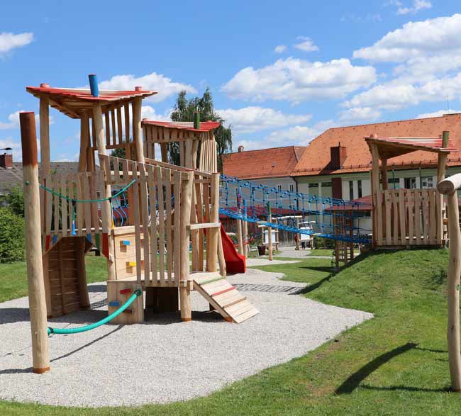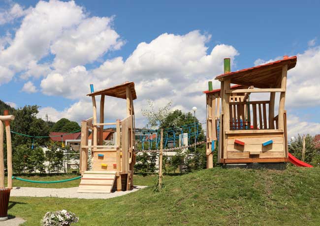 Robinienholz ist ein witterungsbeständiges Hartholz mit optimalen Eigenschaften für den Einsatz im Außenbereich. Um unseren Spielanlagen ein wenig Farbe zu verleihen, arbeiten wir mit einem speziellen Holzanstrich auf Natürölbasis, welcher umweltverträglich und gleichermaßen kinderfreundlich ist.