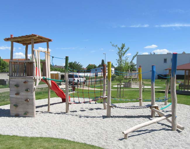 Wir von AGROPAC versuchen, unsere Spielanlagen so sicher wie möglich zu gestalten. Das fĂ€ngt schon bei der Planung an, wo wir darauf achten, dass fĂŒr jedes einzelne GerĂ€t die erforderlichen SicherheitsabstĂ€nde eingehalten werden.