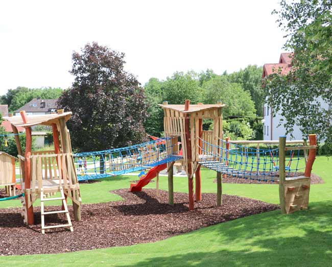 Robinienholz ist ein witterungsbeständiges Hartholz mit optimalen Eigenschaften für den Einsatz im Außenbereich. Um unseren Spielanlagen ein wenig Farbe zu verleihen, arbeiten wir mit einem speziellen Holzanstrich auf Natürölbasis, welcher umweltverträglich und gleichermaßen kinderfreundlich ist.