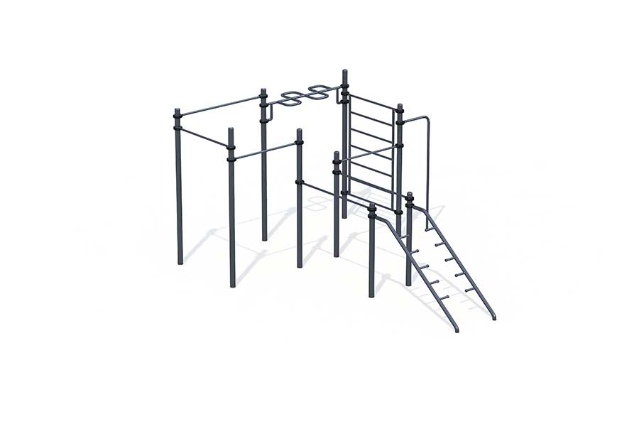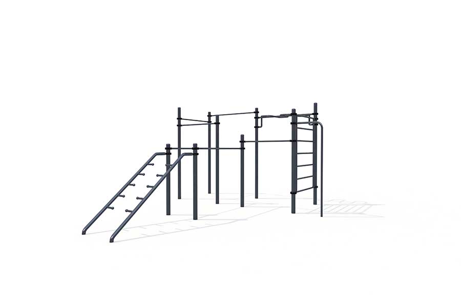 - Reckstange vertikal, Hangelleiter geschwungen aus Rundrohr Ă 42 mm, verzinkt und pulverbeschichtet