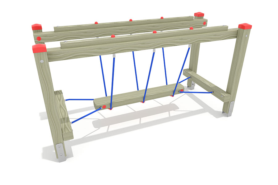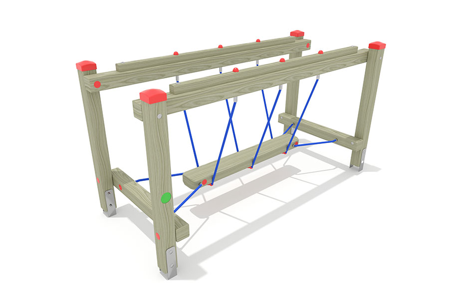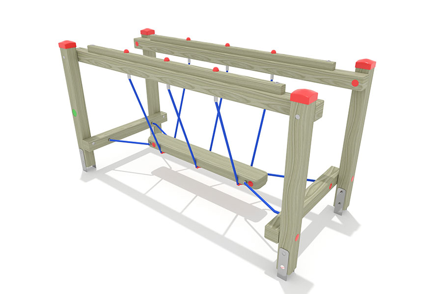 Kletternetze bestehen aus Herkulesseilen mit Stahldrahteinlagen mit feuerverzinkten Anschlüssen. Die Seile sind UV-beständig und mit PP-Leinen umwickelt. Die Seilverbindungen sind mit patentierten PP-Elementen hergestellt und vandalensicher.