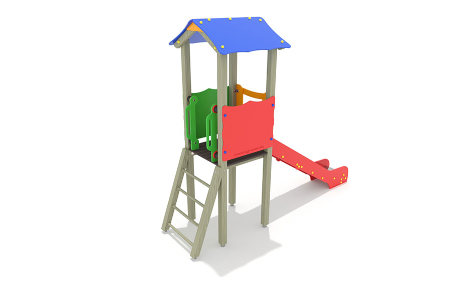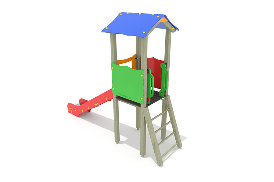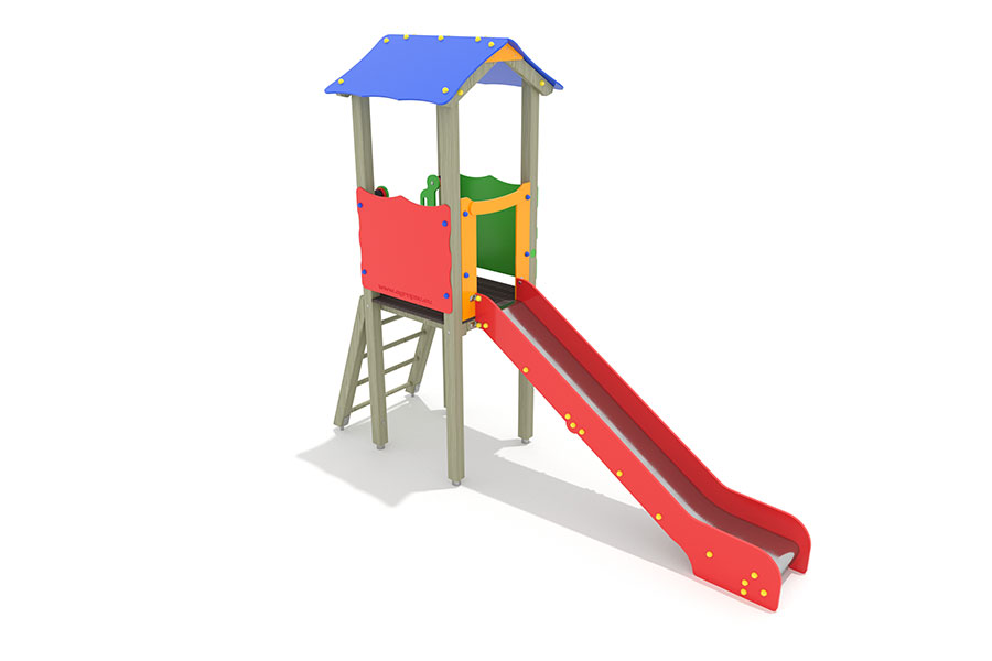 - 1 Rutschenturm mit Satteldach, Podesth. 125 cm