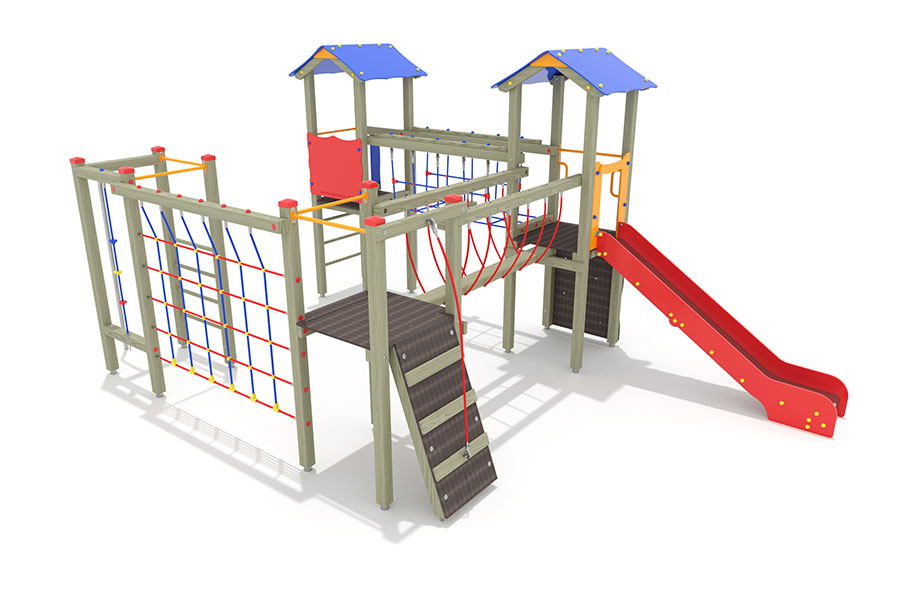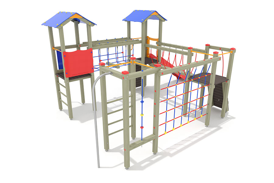 Kletternetze bestehen aus Herkulesseilen mit Stahldrahteinlagen mit feuerverzinkten Anschlüssen. Die Seile sind UV-beständig und mit PP-Leinen umwickelt. Die Seilverbindungen sind mit patentierten PP-Elementen hergestellt und vandalensicher.