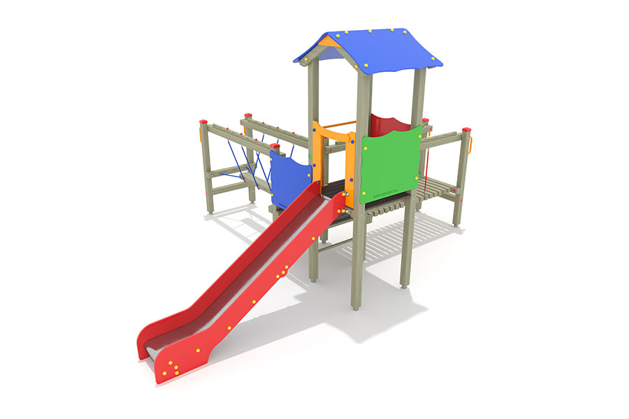 - 1 Rutschenturm mit Satteldach, Podesth. 125 cm