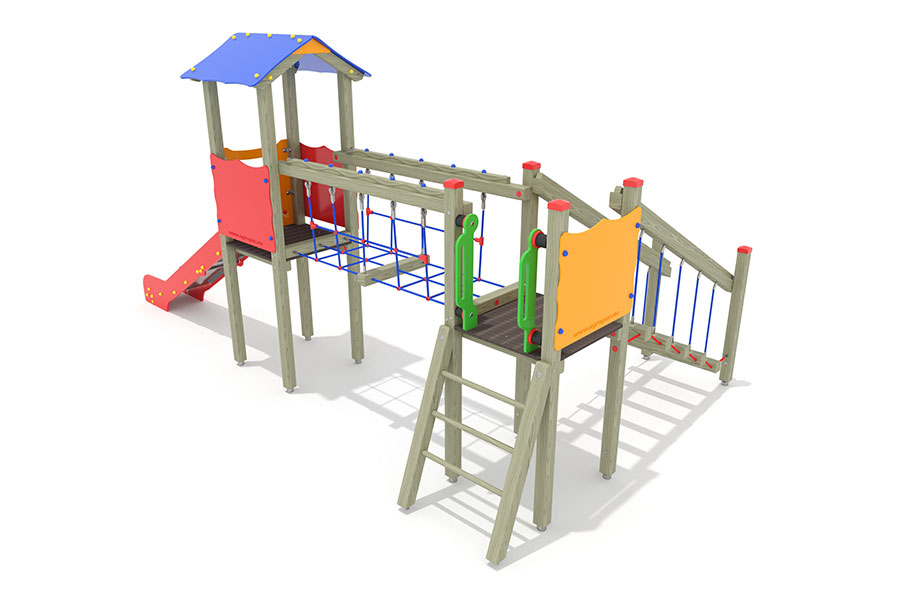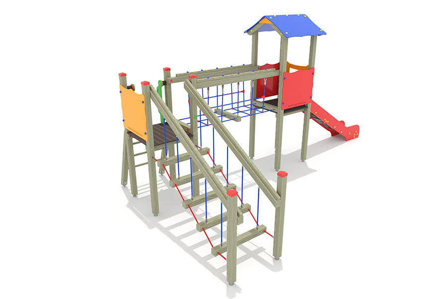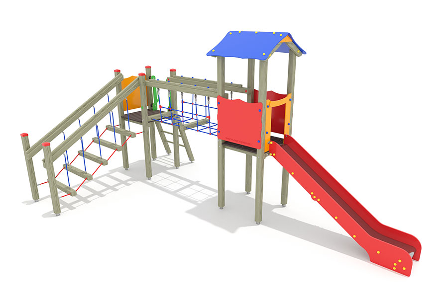 - 1 Rutschenturm mit Satteldach, Podesth. 125 cm