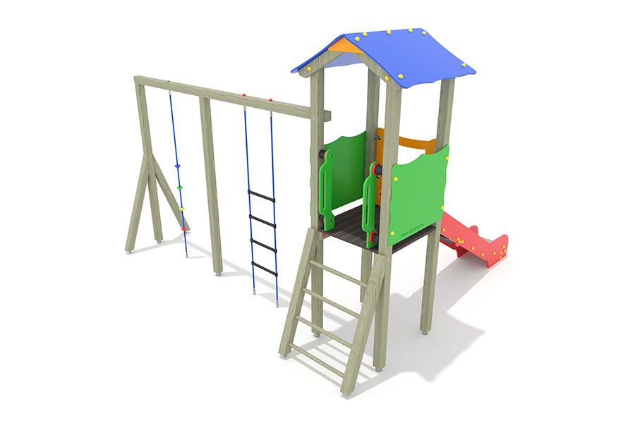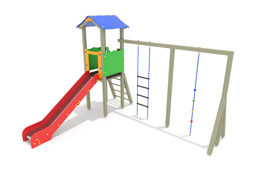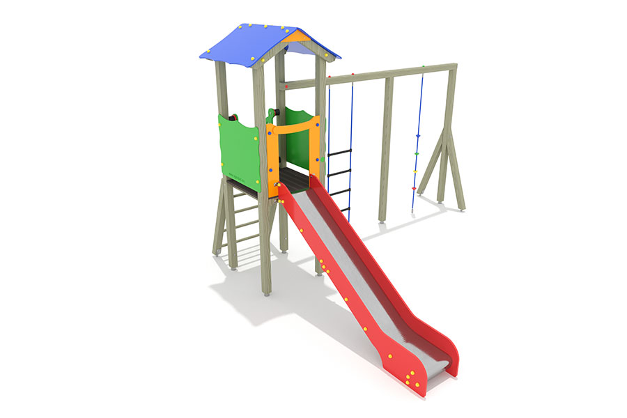 - 1 Rutschenturm mit Satteldach, Podesth. 125 cm