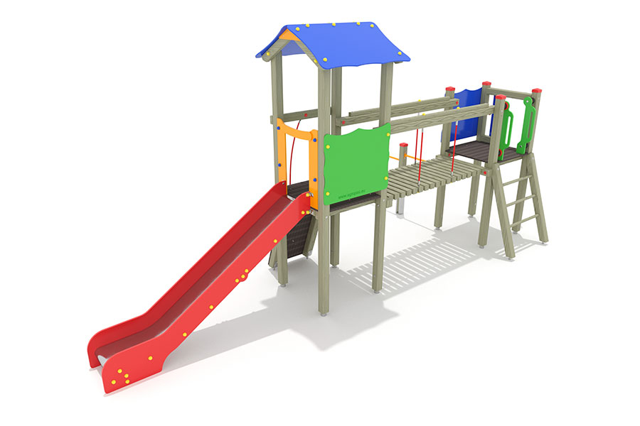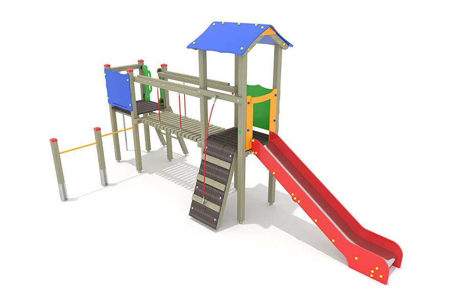- 1 Rutschenturm mit Satteldach, Podesth. 125 cm