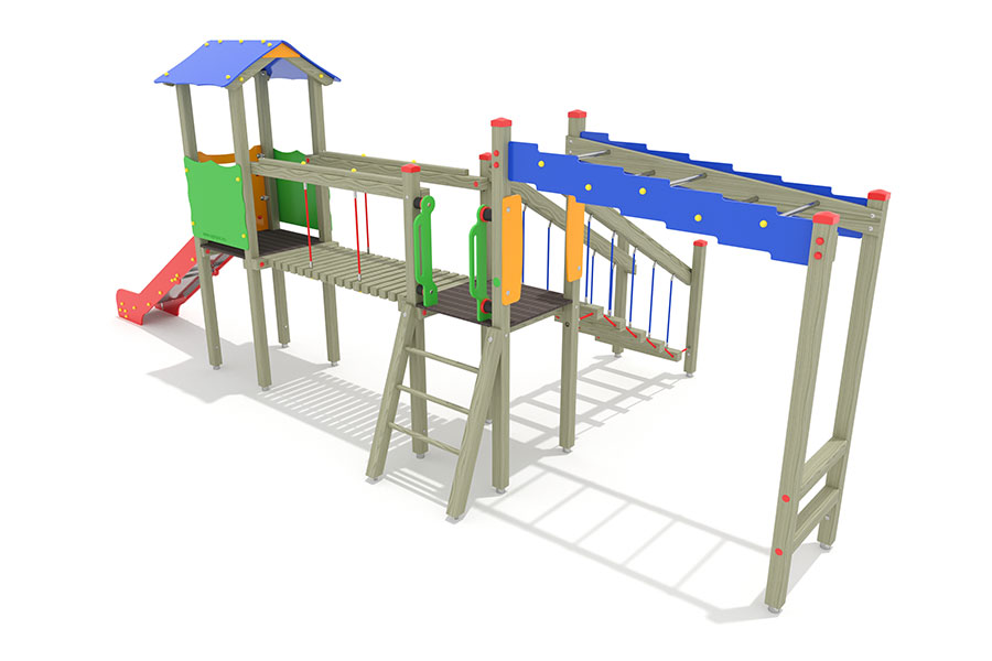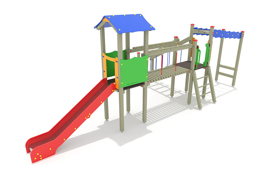 Unsere Kieferleimbinder sind kesseldruckimprägniert und durch eine umweltfreundliche Lasur gegen Feuchte geschützt. Kiefer Imprägniert stellt die kostengünstigste Variante unserer Spielgeräte dar und zeichnet sich durch die schöne tannengrüne Farbe der Holzelemente aus.