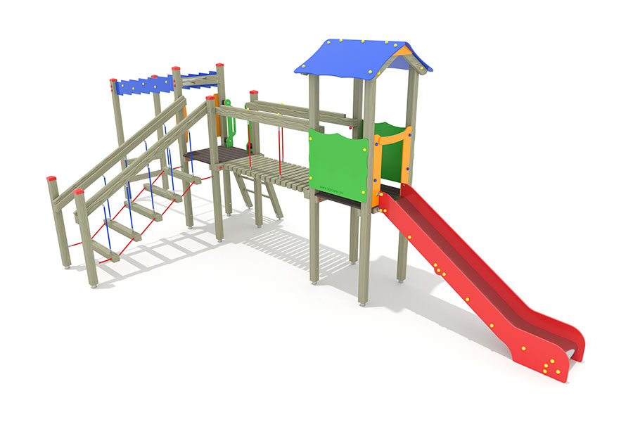 - 1 Rutschenturm mit Satteldach, Podesth. 125 cm