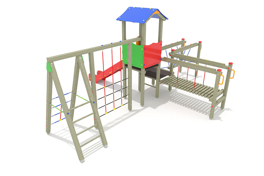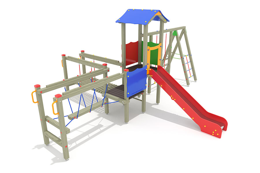 - 1 Rutschenturm mit Satteldach, Podesth. 125 cm