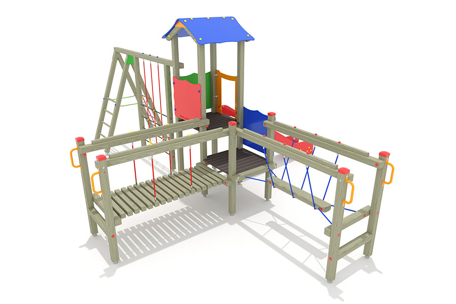 Kletternetze bestehen aus Herkulesseilen mit Stahldrahteinlagen mit feuerverzinkten Anschlüssen. Die Seile sind UV-beständig und mit PP-Leinen umwickelt. Die Seilverbindungen sind mit patentierten PP-Elementen hergestellt und vandalensicher.