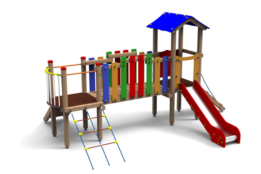 - 1 Rutschenturm mit Satteldach, Podesth. 95 cm
