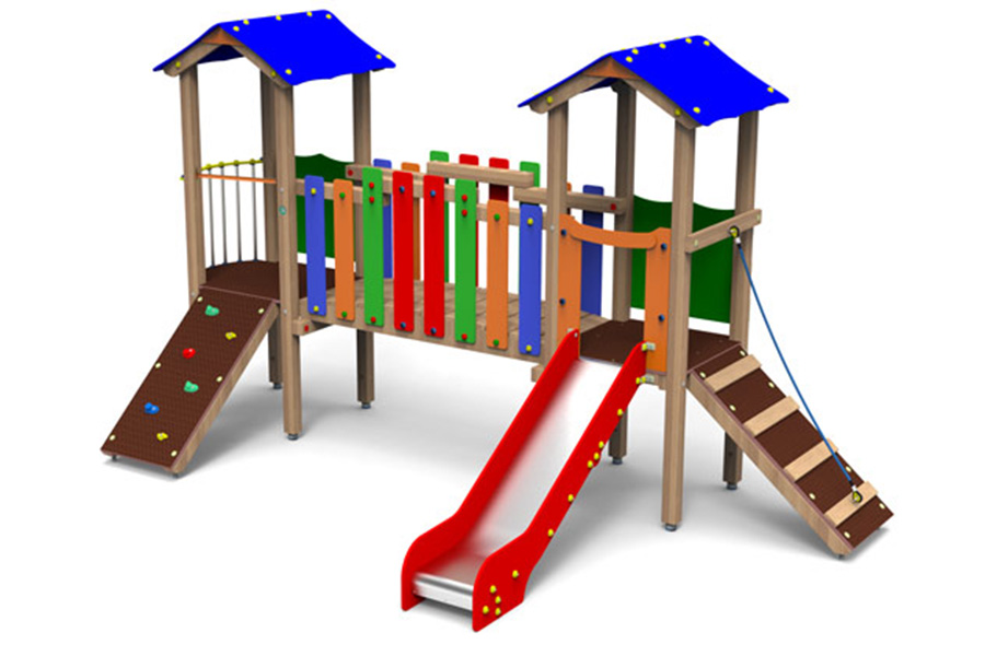 - 1 Rutschenturm mit Satteldach, Podesth. 95 cm