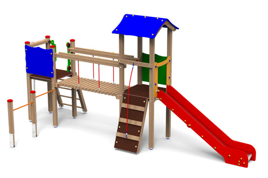 - 1 Rutschenturm mit Satteldach, Podesth. 125 cm