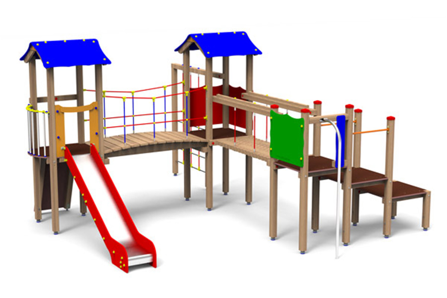 - 1 Rutschenturm mit Satteldach, Podesth. 125 cm