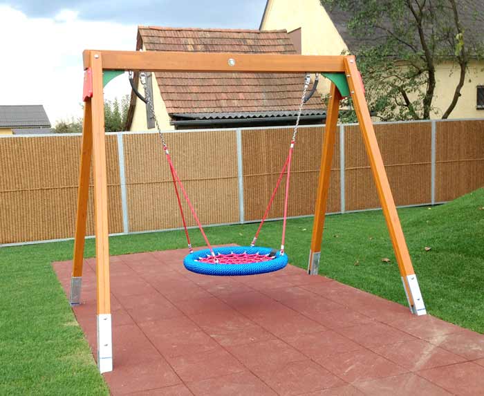 Als Fallschutz sind lose Materialien wie Rindenmulch, Hackgut, Sand oder Rundkorn zulÀssig. Daneben gibt es synthetische BodenbelÀge in Form von Fallschutzplatten oder Direkteinbau mit EPDM-Belag.