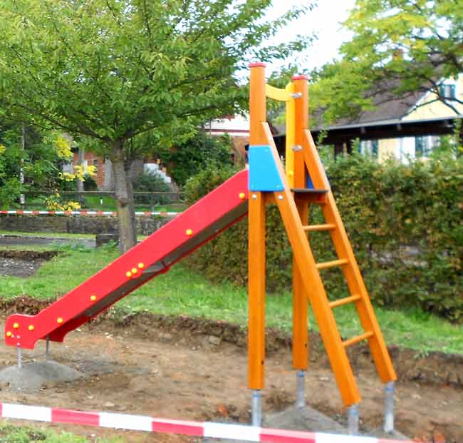 Alle Rutschenausstiege entsprechen der Norm EN 1176. Mit neu entwickelten Rutschen wird der kritische Ausstiegsbereich so gestaltet, dass keine seitlichen Ăffnungen zwischen Standpfosten und Rutsche entstehen.