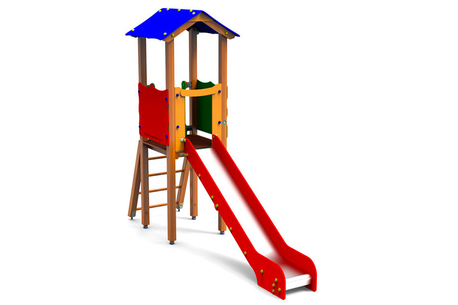 - 1 Rutschenturm mit Satteldach, Podesth. 145 cm