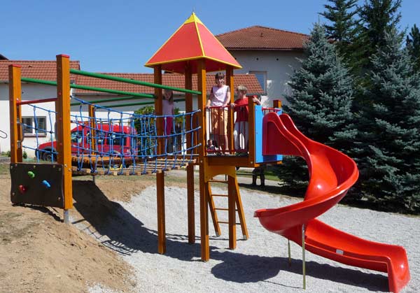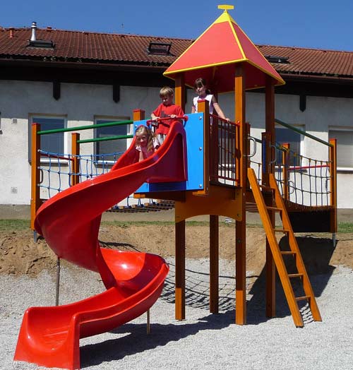 - 1 Rutschenturm mit Pyramidendach und Balkonvorbau