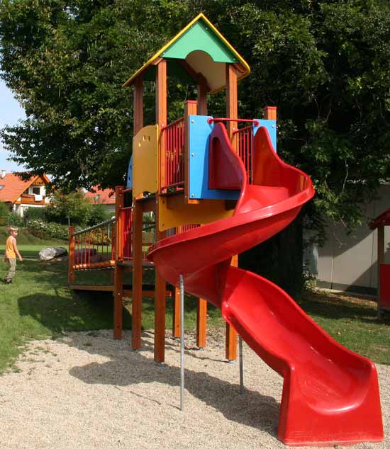 Alle Rutschenausstiege entsprechen der Norm EN 1176. Mit neu entwickelten Rutschen wird der kritische Ausstiegsbereich so gestaltet, dass keine seitlichen Ăffnungen zwischen Standpfosten und Rutsche entstehen.