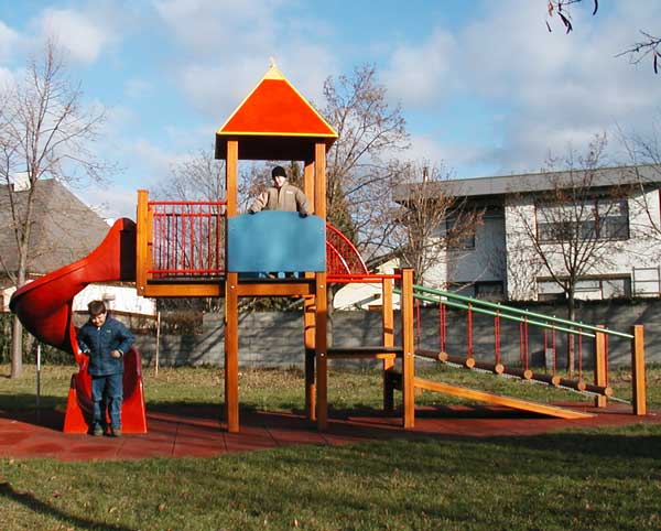 - 1 Rutschenturm mit Balkon und Pyramidendach,