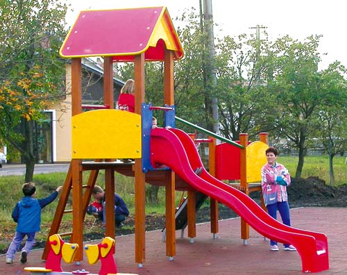 - 1 Rutschenturm mit Satteldach Podesth. 145 cm