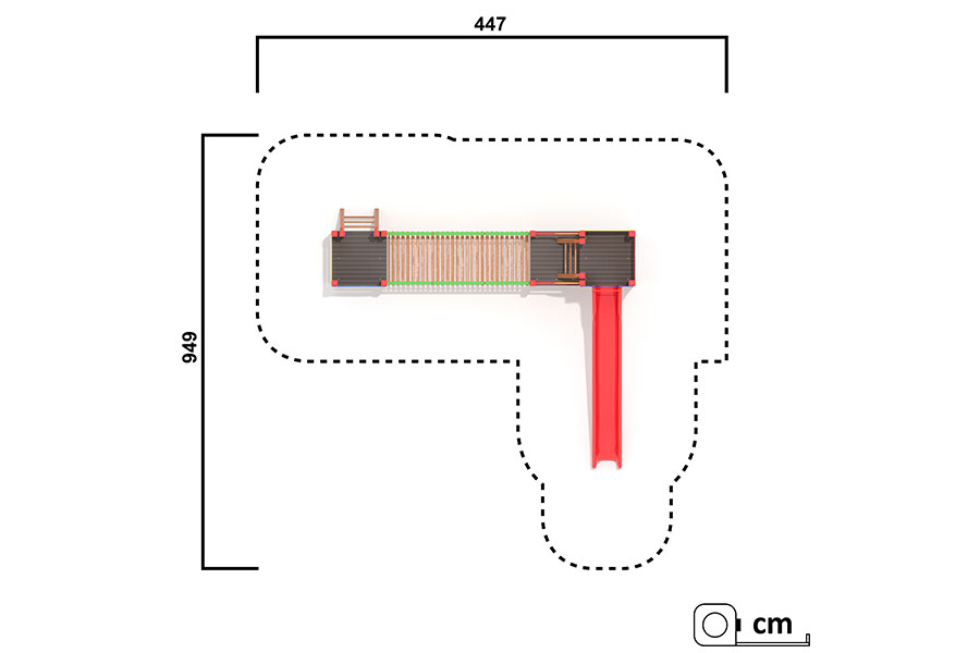 - 1 Hängebrücke mit Metallhandlauf 300 cm
