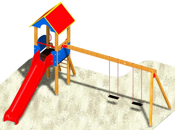 - 1 Rutschenturm mit Satteldach Podesth. 145 cm