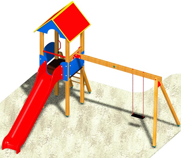 - 1 Rutschenturm mit Satteldach, PH 145 cm