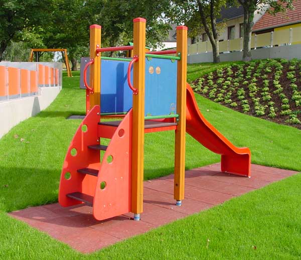 FĂŒr SpielgerĂ€te unter einer Fallhöhe von 1,0 Metern ist Rasen bzw. Oberboden zulĂ€ssig. Bei SpielgerĂ€ten ab einer Fallhöhe von mehr als einem Meter ist laut EN1176-1:2017 Fallschutz erforderlich.