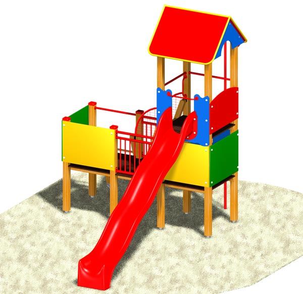 - 1 Rutschenturm mit Satteldach Podesth. 95 cm