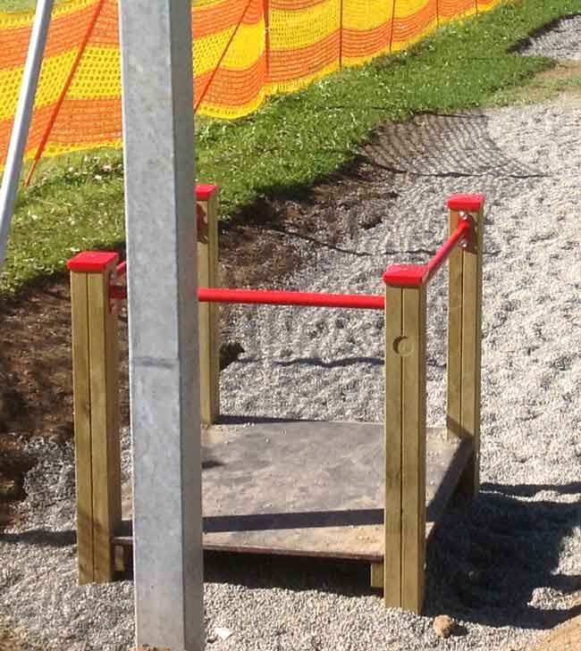 Als Fallschutz sind lose Materialien wie Rindenmulch, Hackgut, Sand oder Rundkorn zulässig. Daneben gibt es synthetische Bodenbeläge in Form von Fallschutzplatten oder Direkteinbau mit EPDM-Belag.