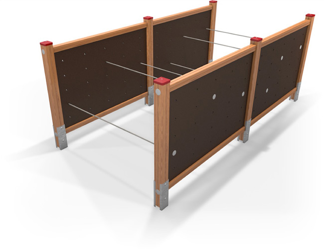 Kletternetze bestehen aus Herkulesseilen mit Stahldrahteinlagen mit feuerverzinkten Anschlüssen. Die Seile sind UV-beständig und mit PP-Leinen umwickelt. Die Seilverbindungen sind mit patentierten PP-Elementen hergestellt und vandalensicher.